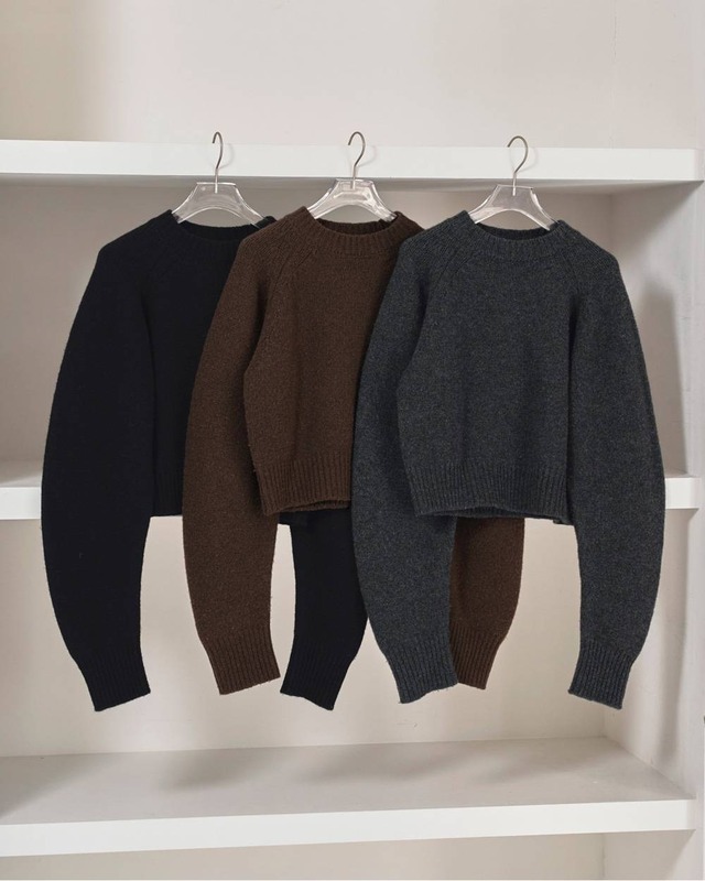 上質なウール100%の糸で編み上げたニットプルオーバー。短めの着丈に、ふんわりと膨らむ少し長めのスリーブが特徴的な一枚。程良く厚みのある編地が立体的なシルエットを美しく保ち、さまざまなボトムと好相性。シンプルながらも存在感があり、スタイリングの幅を広げてくれます。同素材のLayered Knit Skirtとのセットアップスタイルもおすすめです。 素材: 毛100% サイズ:FREE着丈47cmバスト96cm裄丈96cm袖ぐり50cm裾幅40cm