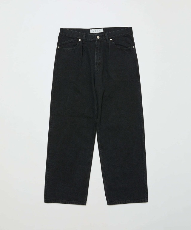 新型ストレートレッグのワイドシルエットの5ポケットジーンズ。 タック入り、ダブルヨークデザイン。色落ち感のクリーンな12ozの岡山県産デニム。 広島県福山にて作成。 MADE IN JAPAN。 ウエスト 股上 股下 すそ周り もも周り(cm) 1 : 83 – 25 – 73 – 22- 69 2 : 88 – 25.5 – 76 – 23 – 72 3 : 93 – 26 – 79 – 24 – 75 4 : 98 – 26.5 – 81 – 25 – 77 Material:COTTON