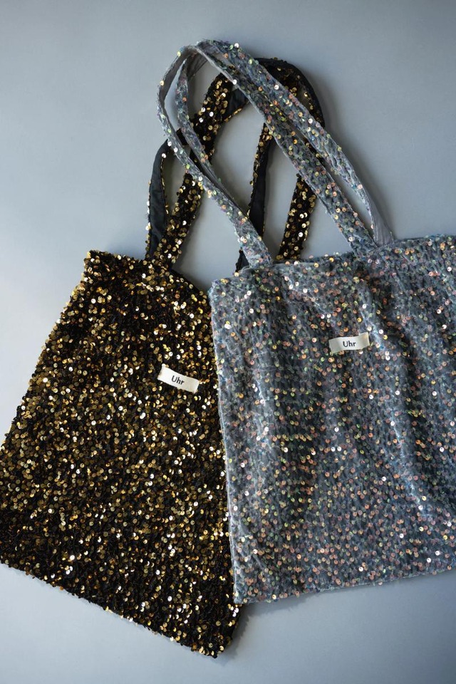 売上の一部を女性支援団体へ寄付することを目的にスタートした「Uhr Friendship Projects」。 人気のスパンコールトートに新タイプが登場しました。 今回は、ベロア素材にスパンコールをあしらったデザインで、カジュアルなシーンはもちろん、華やかな場面にもおすすめのアイテムです。 アウターの上からでも肩にかけやすく、ノートパソコンもすっぽり入る実用的なサイズ感。裏地付きです。 Size H40×W35cm Fabric Polyester95% , Polyurethane5% Lining:Cotton100%