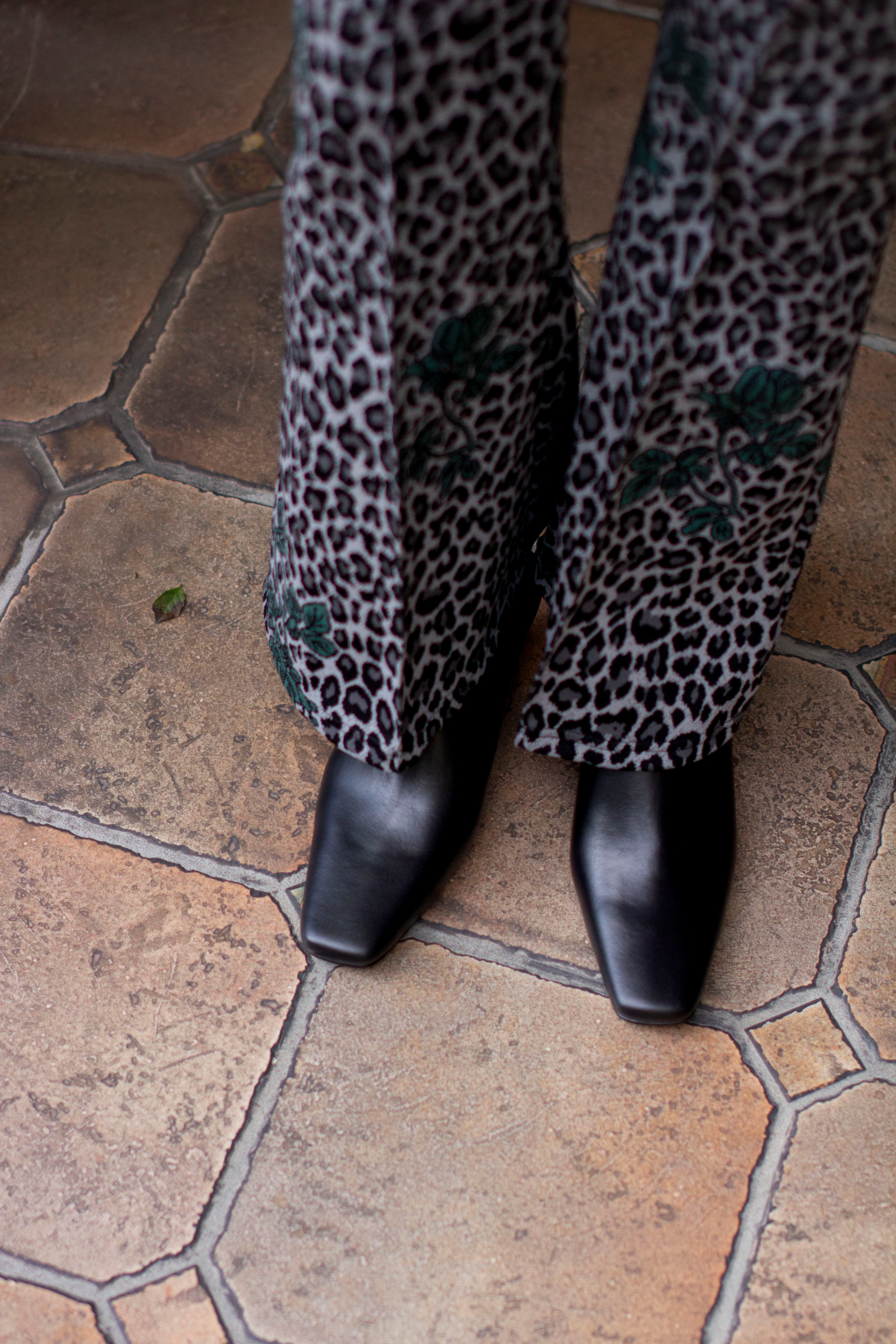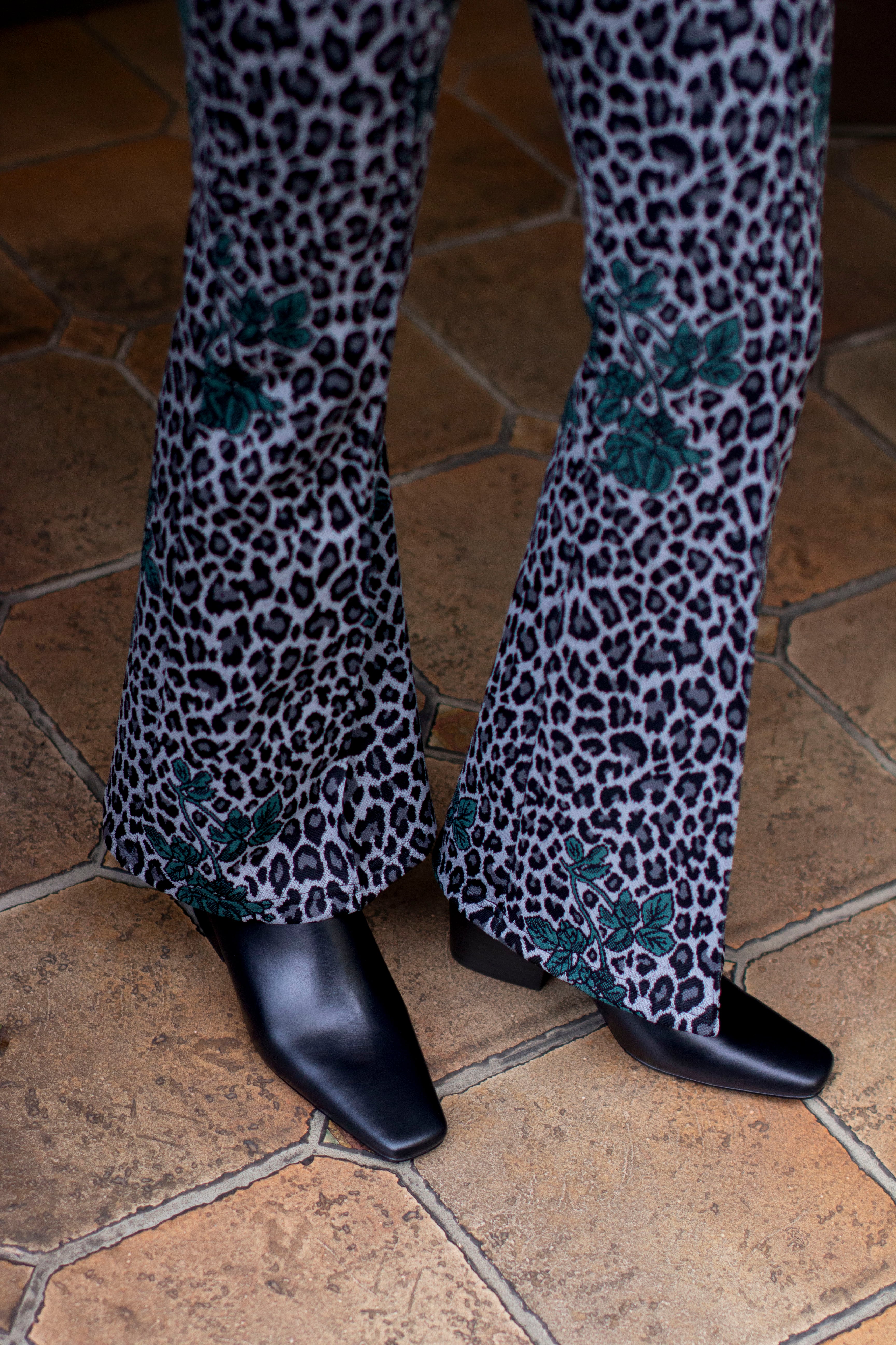高品質な生地を使用したレオパード柄のフレアパンツです。独自のジャカード織りによって、存在感のある模様と深みのあるブラウン色合いが実現。柔らかな素材感と軽やかなシルエットが特徴ですので、さまざまなスタイルに合わせてお楽しみいただけます。