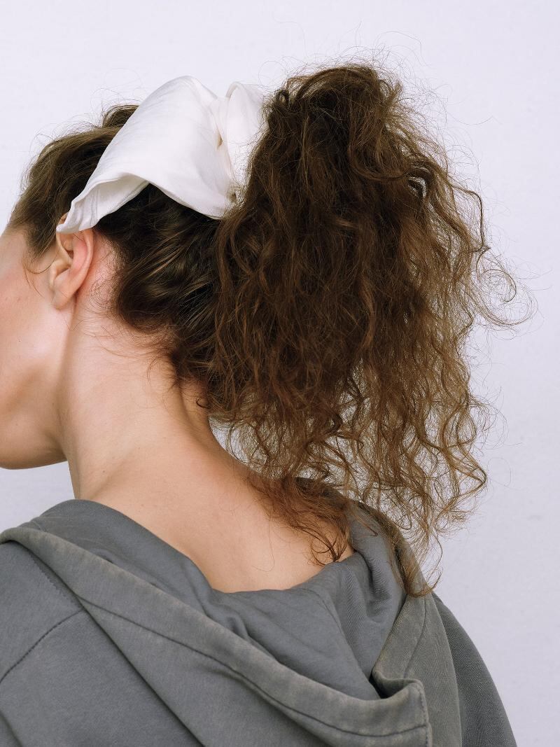 シルク素材の柔らかな生地ながらも適度なボリュームとハリが髪に馴染みやすいデザインにデザインされています。