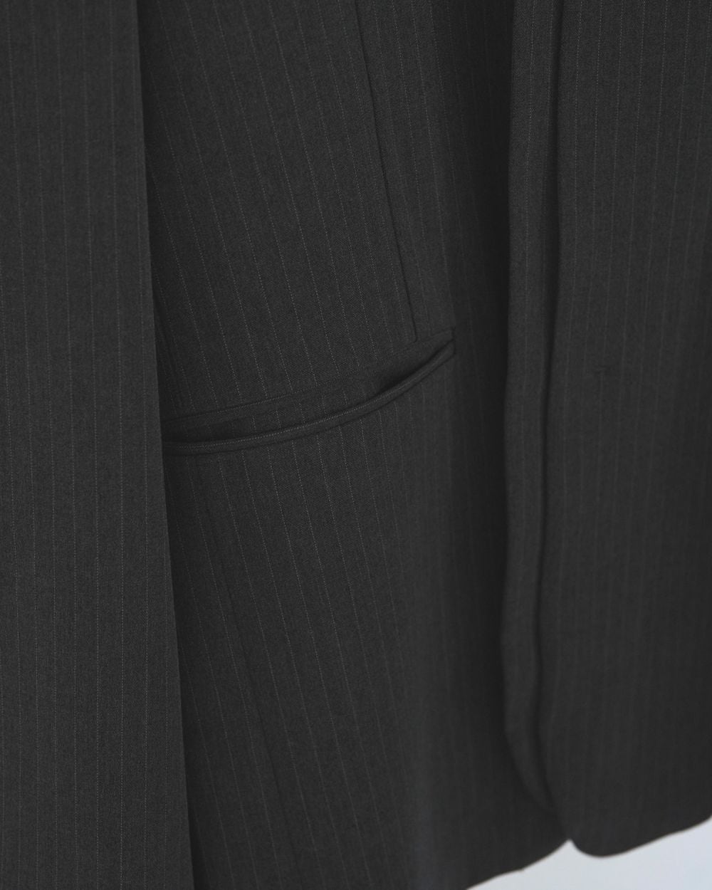 ストレッチ性のある平織りの杢調素材で仕上げたノーカラージャケット。しわになりにくい、肌触りの良い素材です。左身のフロントを2枚重ねたディテールがポイント。前を閉じるとボタンが見えず、ポケット口は細めの両玉縁ポケットでスッキリと仕上げています。ミニマルなデザインながら、重なったフロントデザインがスタイリングのアクセントに。同素材のHeather Stretch PantsやHeather Stretch Middleskirtとセットアップで着るのもおすすめ。グレーは細ラインのストライプ素材。チャコールグレーは少しブルー味のあるなんとも言えない絶妙な色合いで、着るだけで洒落感の出るカラーです。