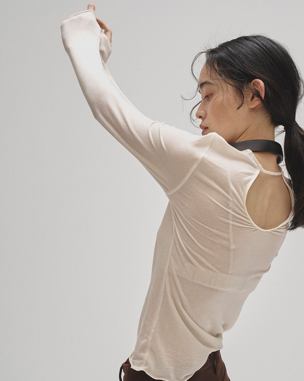 柔らかさと滑らかさが特徴の国内生地を使用したトップス。パウダーのような軽やかな着心地と程よく体にフィットするシルエットが女性らしいラインを美しく引き立てます。バッグスタイルにオープンデザインを施し、程よい肌見せを演出。カジュアルな日常使いからドレッシーなコーディネートまで幅広く活躍する一枚です。