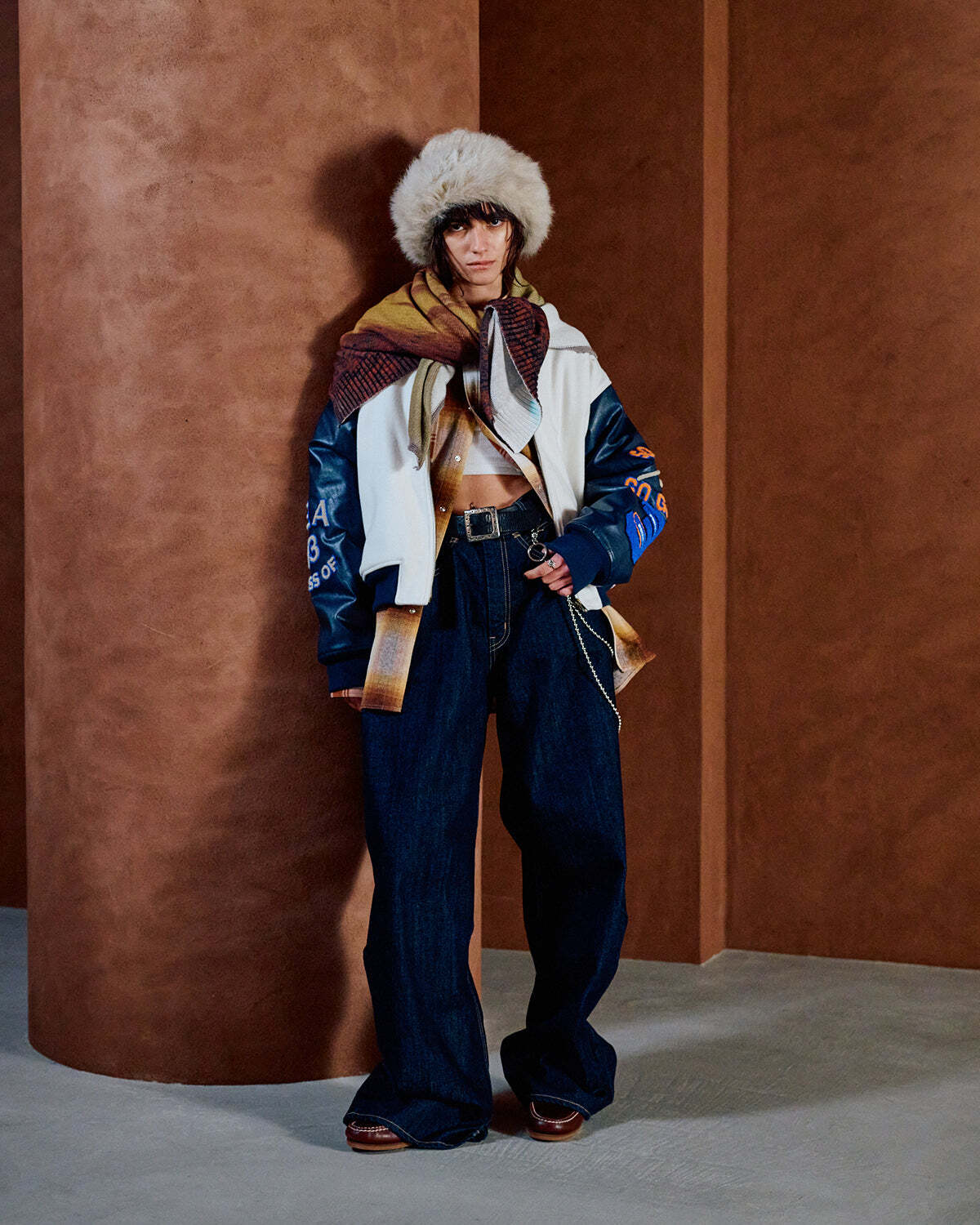 Female model is 174cm wearing size L(NAVY)