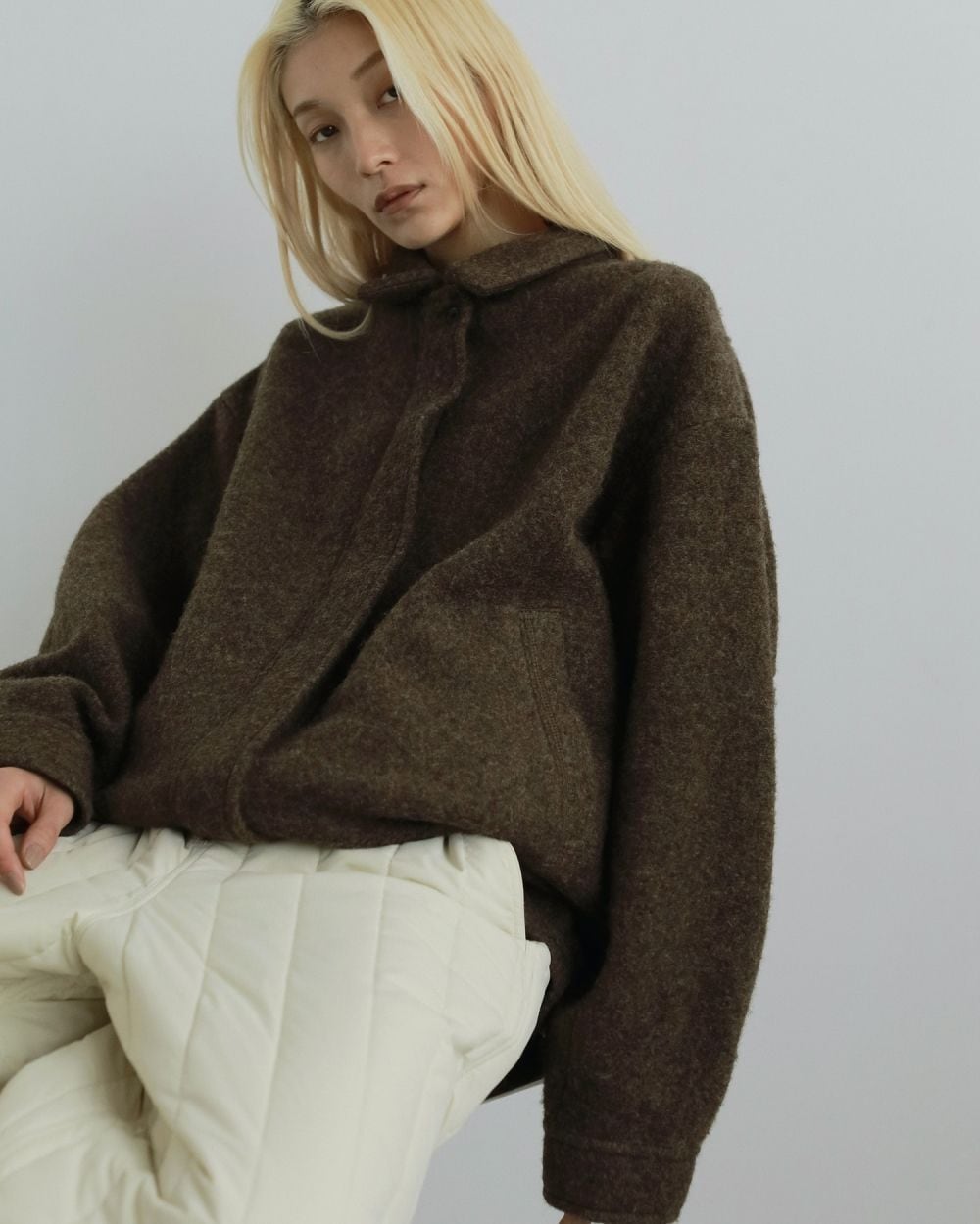スライバー素材で仕上げたZIPブルゾン。柔らかくふくらみのある暖かな素材で、メンズライクに着れるシンプルなデザイン。少し丸みを持たせた袖のシルエットや、エルボーパッチデザインがポイントです。カジュアルなスタイリングにはもちろん、スカートやワンピースなど、甘めのスタイリングにミックスさせるのもおすすめです。