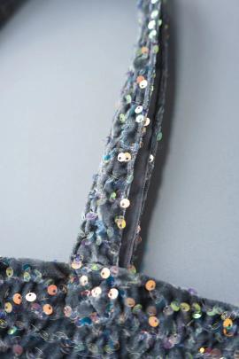 今回は、ベロア素材にスパンコールをあしらったデザインで、カジュアルなシーンはもちろん、華やかな場面にもおすすめのアイテムです。