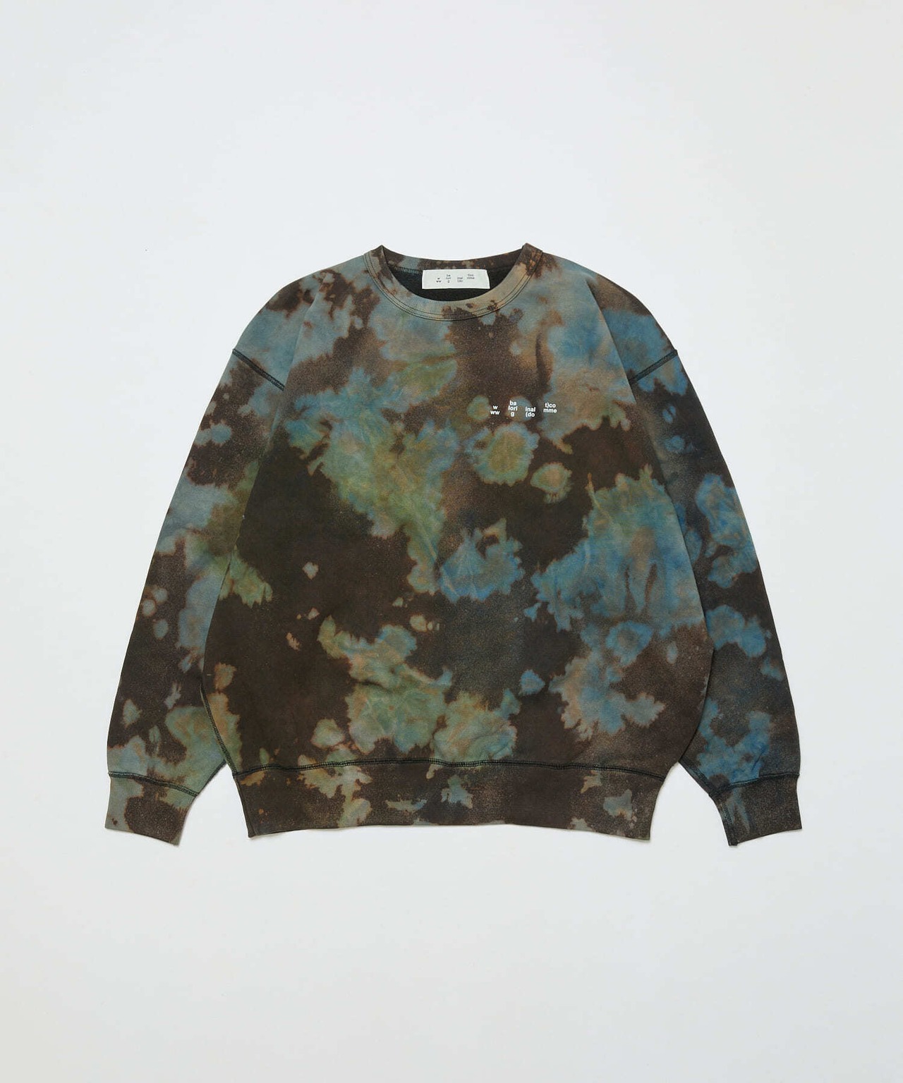 オリジナルタイダイ染めクルーネックスウェット。胸にワンポイントのロゴ。