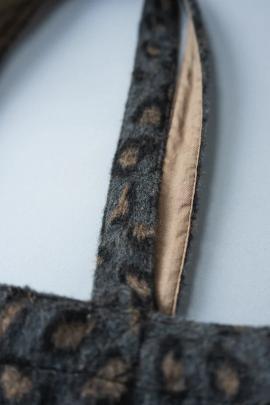 人気のアニマル柄が登場です。起毛感のある素材を使用しました。肩に掛けやすい持ち手の長さで、A4の書類もすっぽり入ります。 裏地付き。