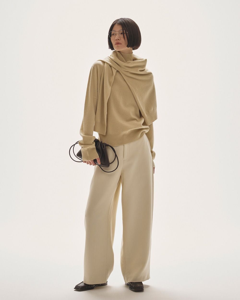 なめらかな質感のウールカシミアの糸を使用して編んだニット。シームレスなので見た目をすっきりと上品な印象に。ミニマルなデザインはボトムスのシルエットを選ばす様々なスタイリングに馴染みます。