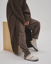 上質なウールカシミア糸で編み上げたイージーニットパンツ。無駄のないミニマルなデザインで、素材の上品さを引き立てた一本。カジュアルにスウェットを合わせても、ジャケットを羽織っても様になる絶妙なバランス感が魅力。同素材のUneck Cashmere Knitとセットアップで着るのもおすすめです。