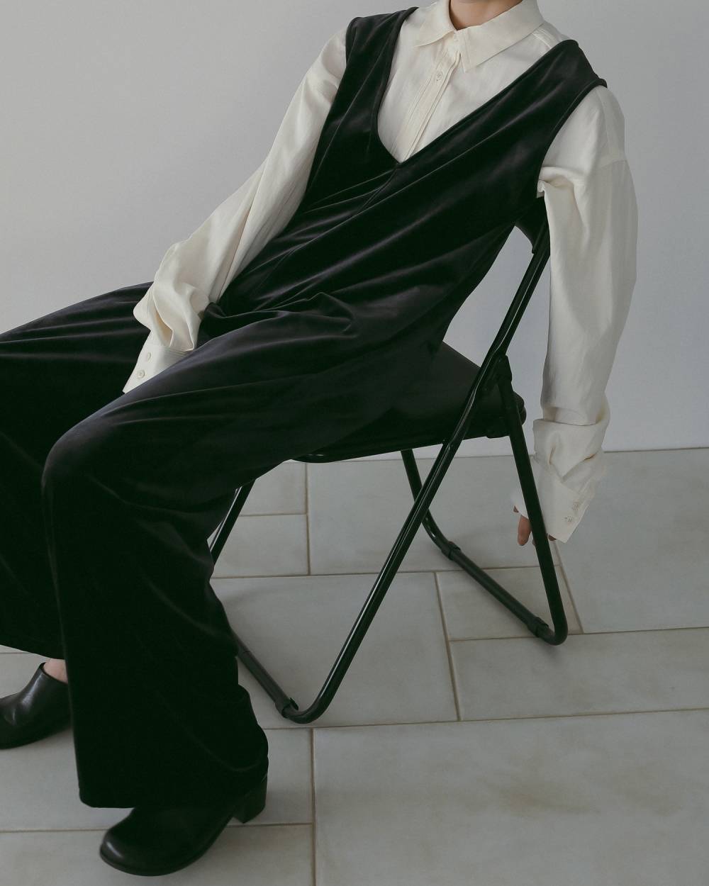 柔らかなベロア素材を使用した、リラックス感のあるコンビネゾン。ゆったりとしたシルエットで、気負わず着られる一枚です。深めのVネックが、程よい抜けと女性らしさをプラス。ほのかな光沢感が、カジュアルにも綺麗目スタイルにも馴染みます。タートルやシャツ、コンパクトトップスなど、インナー次第で幅広い表情を楽しんでいただけます。シアートップスを合わせたり、ジャケットを羽織ればより上品にまとまり、オケージョンシーンにもおすすめです。