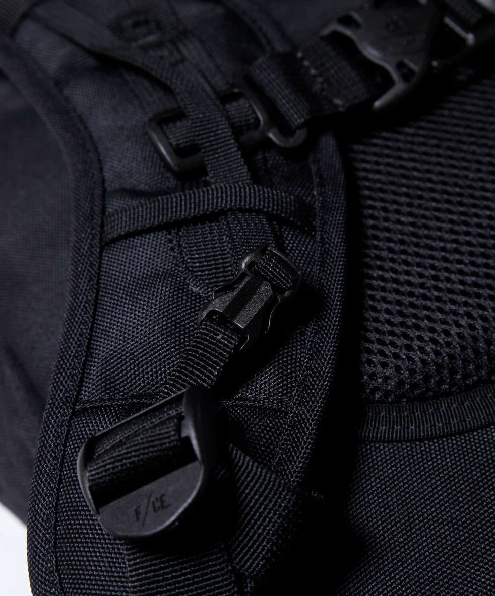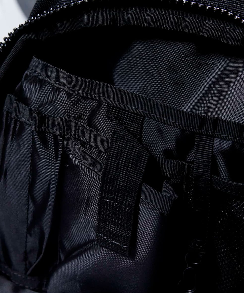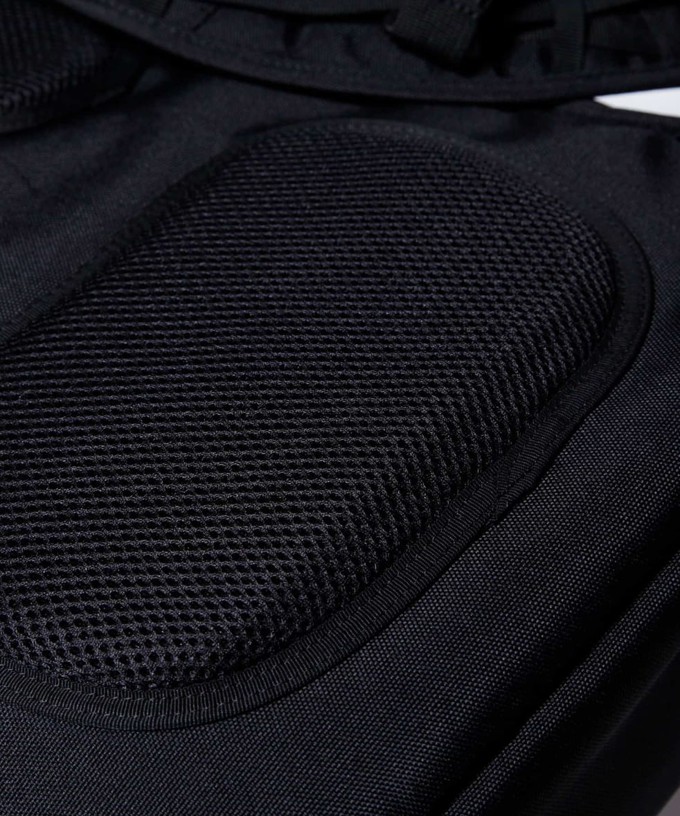 ショルダーにはサコシュや、ポーチなど取り付けられるMOUNTING T SYSTEMを搭載しアップデート。1 泊2 日用の旅を想定し設計された33L のデイパックです。フロントにはマルチガジェットポケット装備。背面には15 インチまでのラップトップも収納可能。 テープのロールエンド処理や、肩のカーブに沿うように工夫されたショルダーは、長時間背負っていても疲れにくい設計で、機能と快適さを追求しました。