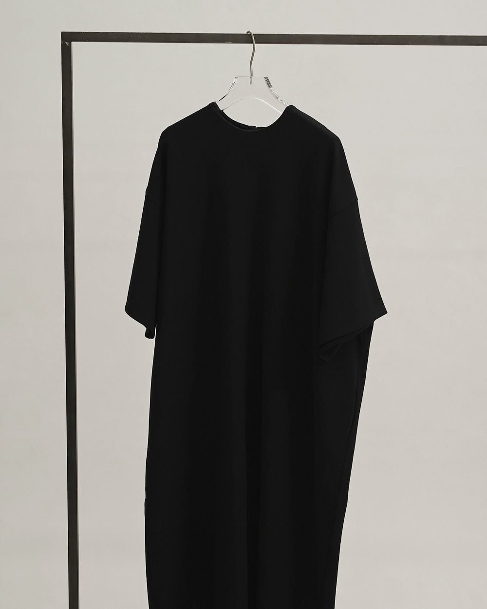 ほどよく肉厚で上質なカットソー生地を使用したドレス。身体のラインを拾わないゆったりとしたシルエットで、ラフに纏えるのに洗練された印象に仕上がる一枚。衿リブを省き、袖裏には薄い生地を重ねることで縫い代のステッチを見せないなど、ミニマルで上品なディテールも魅力。合わせる小物で幅広いスタイリングに馴染みます。