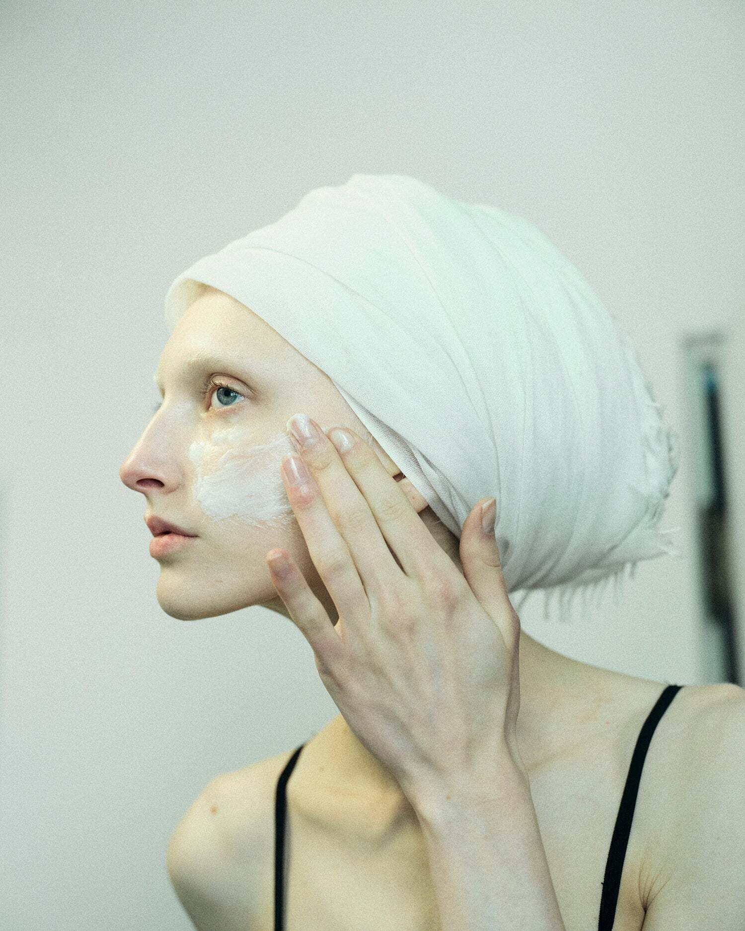 1.クレンジング後の肌に、生せっけんをアーモンド 1~2 粒分取り、泡立てずクリームをつけるようにやさしく顔全体に伸ばします。※伸ばす際は少々泡立ちます。