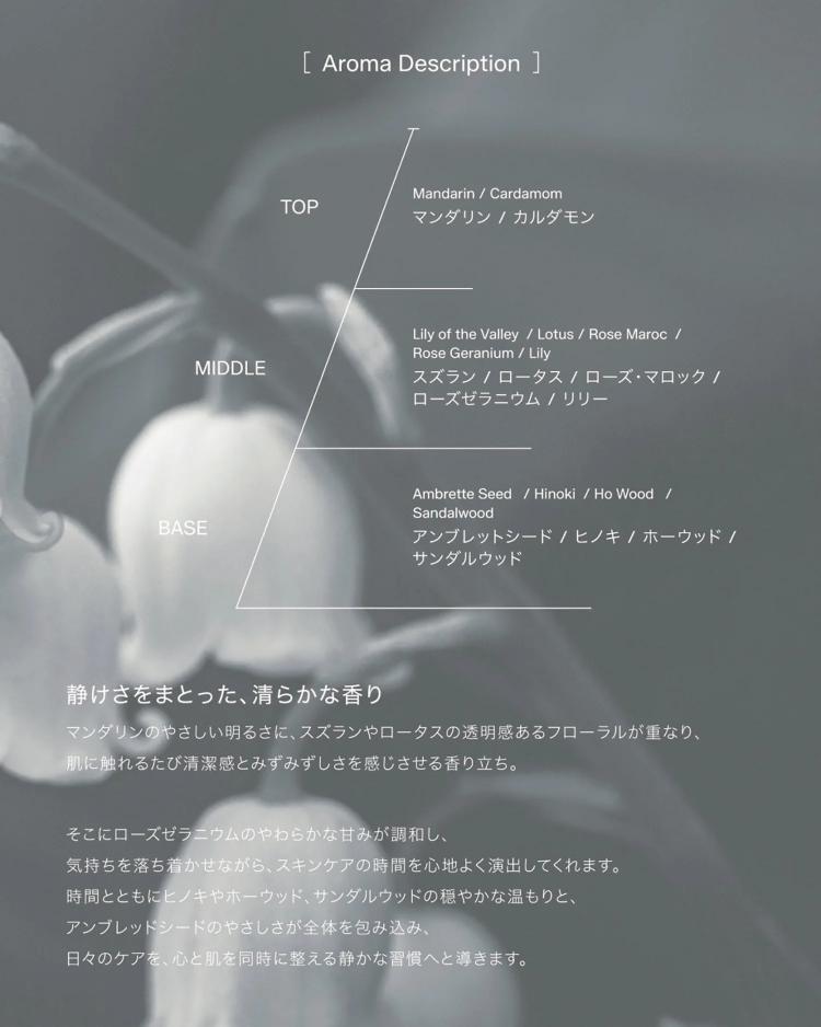 水※1、馬油、スクロース、エタノール、グリセリン、水酸化 K、水酸化 Na、オリーブ果実油、プラセンタエキス(ウマ)、ゴマ種子油、ベントナイト、酒粕、加水分解ローヤルゼリータンパク、カニナバラ果実油、アボカド油、バオバブ種子油、スサビノリエキス、カボス果汁、マンダリンオレンジ果皮油、センチフォリアバラ花エキス、マドンナリリー花エキス、スズランエキス、ニンファエアロツス花エキス、ショウズク種子エキス、ヒノキ油、ニオイテンジクアオイ油、クスノキ葉油、トロロアオイモドキ種子油、ビャクダン油、BG、塩化 Na、ポリグルタミン酸 Na、クエン酸