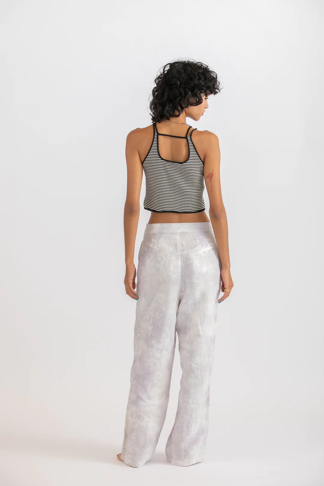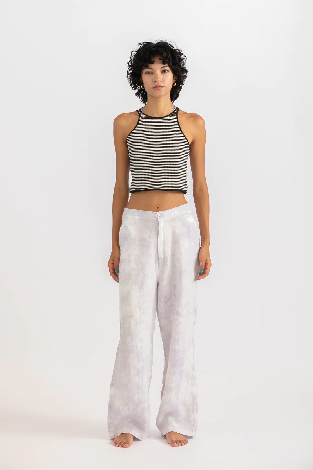 トップスを選ばないシンプルなシルエットに、リネン100%で着心地に優れた素材がヘビーユースしやすい。